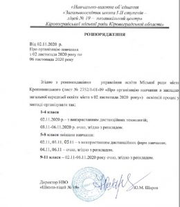 З 09 листопада 2020 року учні 1-11 класів навчаються у звичайному режимі.